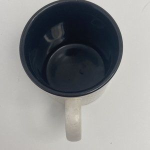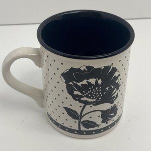 Retro and fun! This black and white coffee mug holds 10 oz. Unique and eye catching floral print over a white background with black polka dots. Bottom black trim with white dots and black interior with white handle. You need this cup. It's a gorgeous addition to your collection.