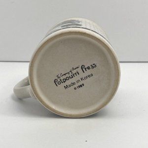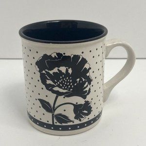 1989 Potpourri Press Coffee Mug Cup Black and White Dot Floral Made in Korea