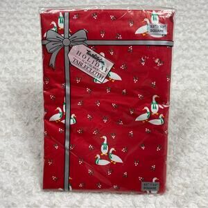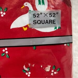 NOS vintage Holiday Christmas Duck Goose Mistletoe table cloth square 52x52. Brand is Town and Country Holiday. Plastic top and flannel back. 1989.