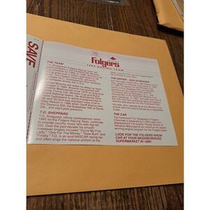 Ken Schrader Folgers Racing, 1989 NASCAR promo, TG Shepard Mountain Grown Coffee, Hendrick Motorsports Chevrolet, vintage NASCAR coupon, Folgers coffee advertising