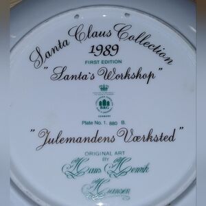 1989 Santa Claus Collection Santa's Work Shop Hans Henrik Hansen Plate