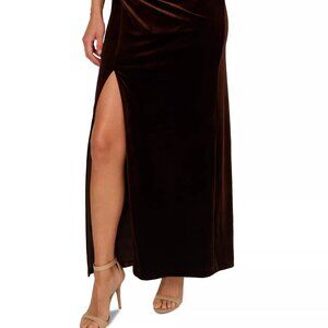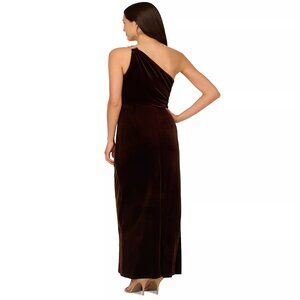 199$ Adrianna Papell Asymmetric One-Shoulder Velvet Gown Maxi Dress Size 2 Brown