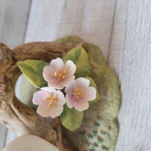 1990 Andrea By Sadek Double White Doves Figurine On Branch With Flowers Porcelai