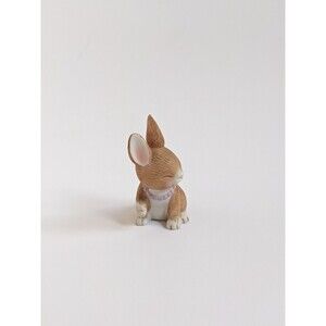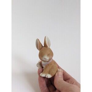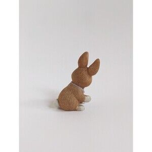 1990 Avon A Mothers Love bisque porcelain bunny figurine, originally part of a two-piece set. This listing includes only the mother rabbitperfect as a display piece or as a replacement for a missing figure from the original set. The figurine features a soft brown and white bunny with a sweet expression and a lavender beaded collar.