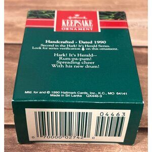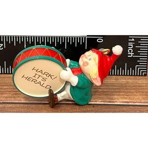 This Hallmark Keepsake Ornament features the charming "Hark! It's Herald" elf drummer from 1990. Part of the Collector's Series, it adds a nostalgic touch to any holiday decor. The ornament is handcrafted, highlighting Hallmark's commitment to quality and festive cheer. It's a delightful piece for collectors and holiday enthusiasts alike.