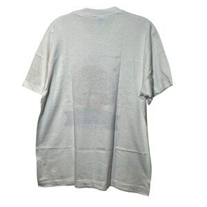 Good vintage conidiation. Graphics are very bright and look brand new. There is a flaw on the back of the shirt, a brown mark. Please see photos.