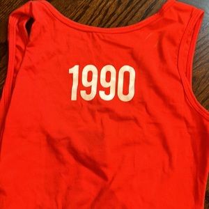 Zara throwback bodysuit (purchased 2012-2015 I’d guess) “1990” red bodysuit with scoop back. Women’s size small.
