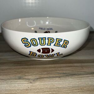 1990 Roman Souper Bowl, Bowl Touch Down Snacks Popcorn Noodles Salad White Green