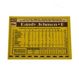 Add the legendary "Big Unit" to your collection! This is the 1990 Topps card #431 featuring Hall of Fame pitcher Randy Johnson during his early years with the Seattle Mariners. A quintessential card for any serious baseball memorabilia enthusiast.
