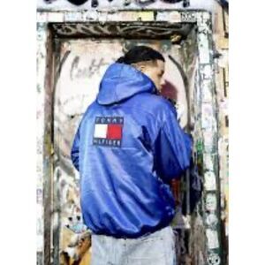 1990S OVERSIZED SHINY BLUE TOMMY HILFIGER PUFFY JACKET YELLOW LINING Men’s XL