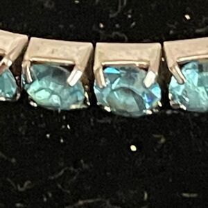 1990s 8” silver tone stretch bracelet w/40 prong set aqua blue Austrian crystals