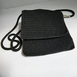 The Sak Vintage 90's Artisan Black Tight Weave Crochet NS Crossbody Bag w Round Strap As New!