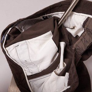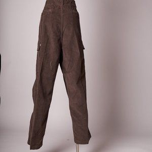 The pants are in great condition. Dark brown corduroy, button fly. Baggy cargo style with pockets on the sides. Made by Stussy. Made of 100% cotton. Marked a size 38 and measures 50 cm across waist, 33 cm rise, 78 cm inseam.