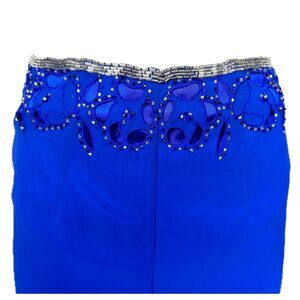Vintage 90's blue and silver beaded crop-top & pants by Showtime Collection. Excellent vintage condition. Marked a size 6 but runs a little small! Recommend for XS/S but please check measurements below to ensure fit as this item has no stretch.
