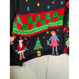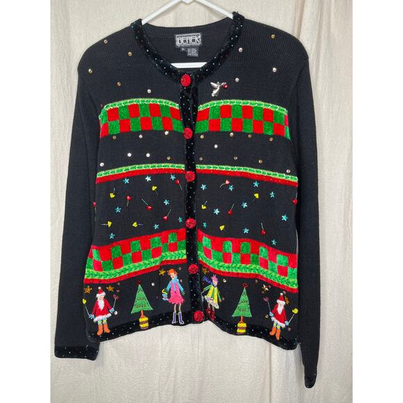 1990s Berek Christmas Chenille Maximalist Santa Whimsical Kidcore Cardigan XL