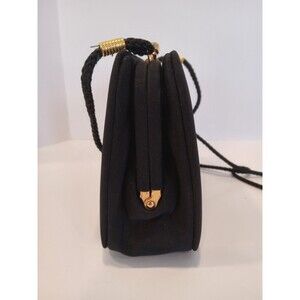 1990s Black Kisslock Boxy Clutch w/ Shoulder Strap Unbranded Evening Bag