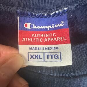 Authentic vintage 1990s Champion sweatshirt featuring New England Patriots team logo. Double-stitched Champion “C” patch visible on sleeve. Tag reads “Champion Authentic Athletic Apparel” and “Made in Mexico.” Fabric blend cotton/poly. No rips, holes, or stains evident; shows soft vintage wear overall. This is a great piece for NFL, Patriots, sportswear, streetwear, vintage, 90s fashion fans.