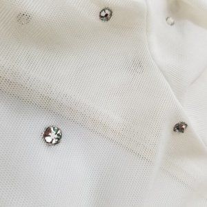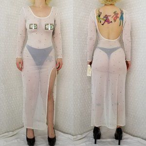 Vintage 1980s/1990s Collante NWT white sheer bedazzled mesh maxi dress. wear it at the beach, the club, the bedroom, the champagne room! hand set rhinestones all over (settings can catch on dress). no size tag. fabric is very stretchy. No pockets. Excellent deadstock vintage condition!
