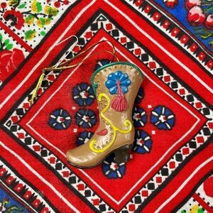 1990s Cowboy Boot High Heel Christmas Ornament Western Kitschy Southwest Vintage