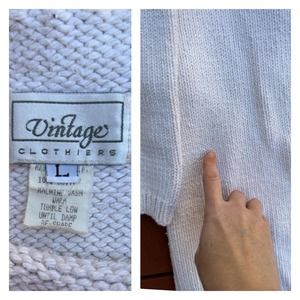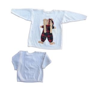 1990s Cream Oversized Knit Sweater with Bunny Design / Large *