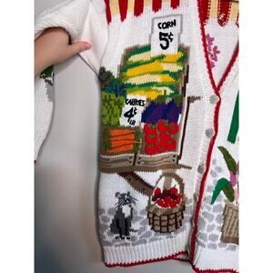 1990s Design Options Farmers Market Produce Art To Wear Fruits Scenic Cardigan L