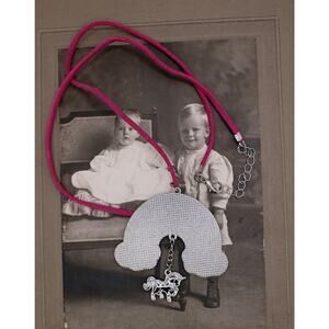 1990's Enamel Rainbow with Unicorn Pink Leather Strap Necklace