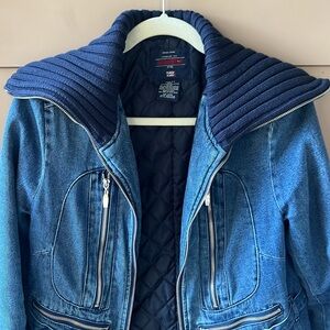 1990s Faded Glory Denim And Knit Zipper Jacket Quilted Lining Sz S Y2K