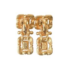 Gorgeous rectangle rich ruby red prong set rhinestones accented with white baguette & round bezel set rhinestones set in gold plated metal drop dangle clip earrings circa 1990s. Hallmarked Givenchy on an oval cartouche on the backside, each measure 1/2 inch to 5/8 inch wide by 1-1/2 inches tall. Although pre-owned, the earrings are in excellent condition appearing have never been worn. No loose, discolored or missing rhinestone. No metal wear. The clips still fit tight. Consider the pictures to be part of the description. Don’t hesitate to ask any questions.