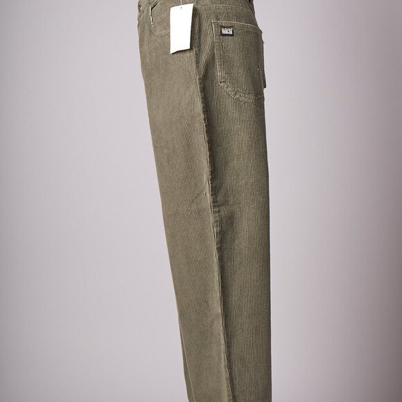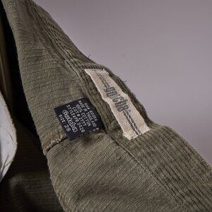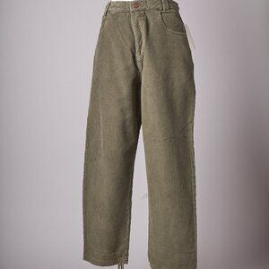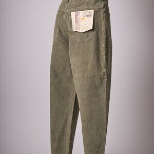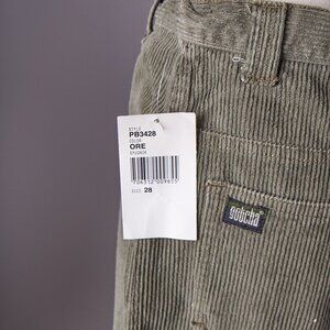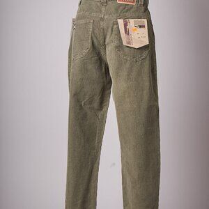 The pant are in deadstock condition, with tags still attached. Green color with thick corduroy. Closes with metal Venus zipper and button at top. Made by Gotcha. Made of 100% cotton. Marked a size 28 and measures 37 cm across waist, 31 cm rise, 64 cm inseam.