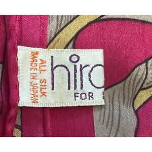 1990s Hiroko for Dozo Pink & White Semi Sheer Silk Square Floral Motif Scarf