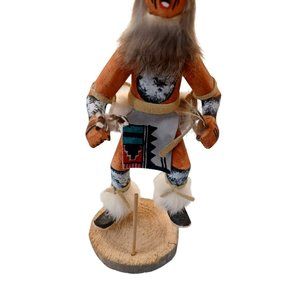 1990's Hopi Wolf Kachina Doll Handmade Wood 10" Signed Detail Native Am Vintage