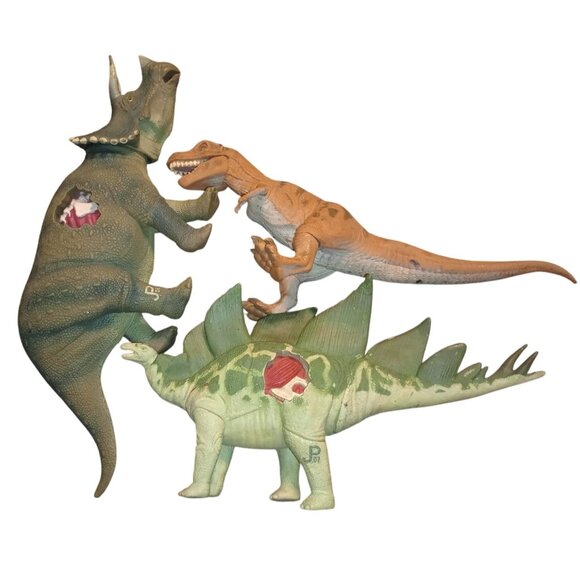 1990s Jurassic ParK 3pc T-Rex JP06 Stegosaurus JP07 Triceratops JP08 Vintage W/O