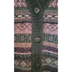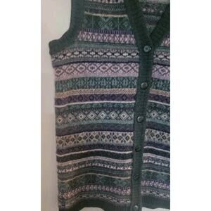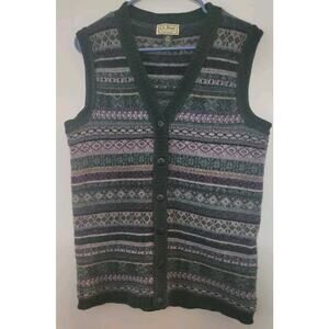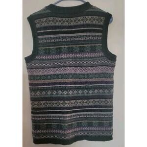 1990s L.L. Bean 100% Woll Striped Sweater Vest Mens Sz. M Vtg. Knit. This is made in the USA. This is green, blue and white. This is soft and warm.