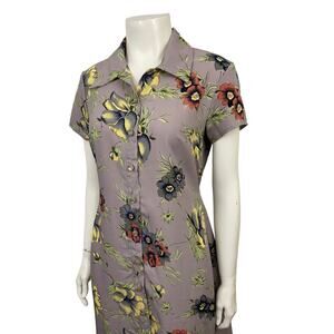 1990s Lavender Floral Long Maxi Dress Button Up Tie Dress / Women’s Small