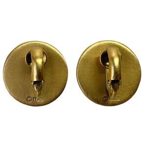 Sumptuous elegance - circular brushed & textured gold-plated embossed metal framing rich simulated bright blue lapis cabochons centers clip earrings circa 1990's. Hallmarked MFA for Museum Fine Art, each measure 3/4 inch in diameter. Although pre-owned, these earrings are in in excellent condition with small scratches from wear. No loose, missing or cracks glass cabs. No metal wear. Consider the pictures to be part of the description. Don’t hesitate to ask any questions.