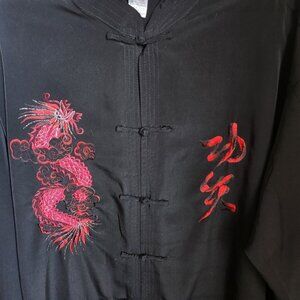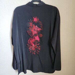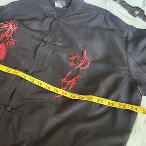 1990's Mens Asian Cheongsam Style Shirt Size XXXL 3X Black Kungfu Embroidery