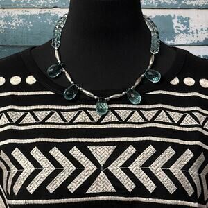 1990s NATIVE AMERICAN Sterling Silver & Blue Chalcedony 5 Teardrop Bead Necklace
