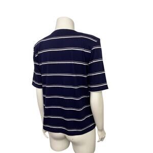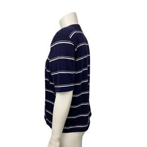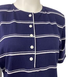 1990s Navy Stripe Nautical Henley Shirt Cotton Top / Women’s Medium
