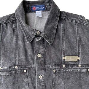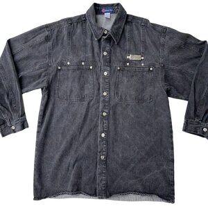 1990s Paco Rabanne LARGE Distressed Gray Denim Baggy Big Pocket Shirt Jacket