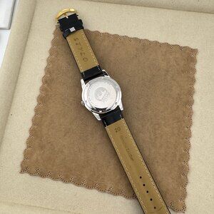 Vintage Pulsar Watch all Stainless Steel Back Day and Date Black Luminous Hands and raised Markers, perfect crystal 1.5 inch diameter Watch is a Pulsar VJ33-X006 Screw Down Back 9.5 inch Black Leather Strap Water resistant to 100 meters (330 Feet) Reg 682128 nice Japan Movement and new battery keeps time