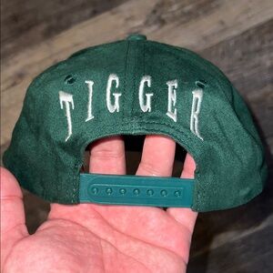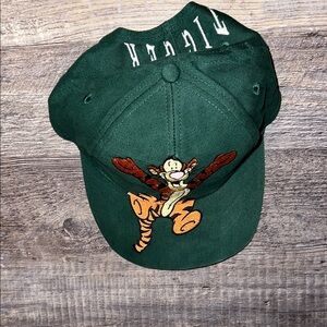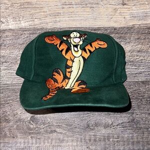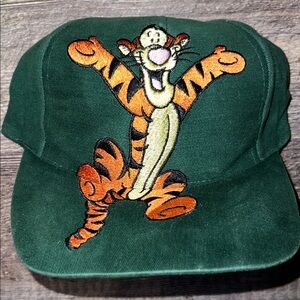 Green cap featuring Tigger embroidery. Fun and playful design.