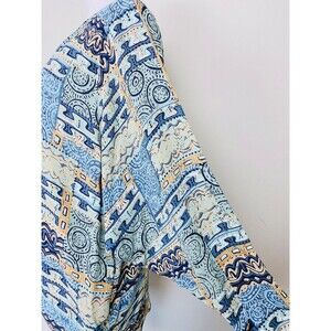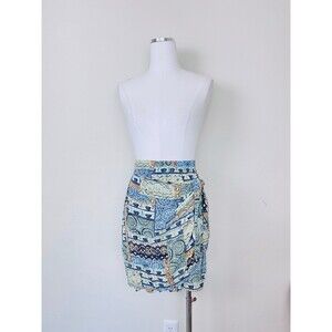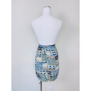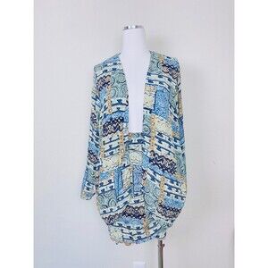 This Karen Kane set is so good! Made of a soft and light rayon in a blue southwestern print. Comes with two pieces. Sarong style mini skirt is so flattering and has elastic at the waist for your comfort. Comes with a cocoon style jacket. Pair with a crop top and youre ready to go!