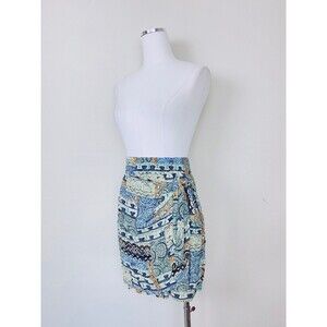 1990s Vintage Blue Southwestern Sarong Skirt Set / 90s Rayon Cocoon Jacket 10