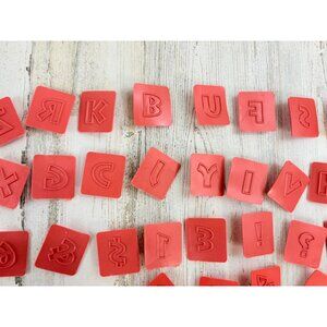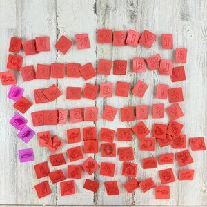 Lot of over 80 Crayola rubber ink stamps with a few removable handles. Includes a lot of letters and numbers (haven't checked for the whole alphabet) and cartoons.