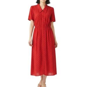 1990s Vintage Liz Claiborne Red A-Line Collared Midi Dress 6P Small