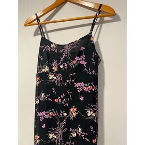 1990s Vintage Mini Slip Dress Sheer Overlay Black w Purple Flowers Size S/M JL