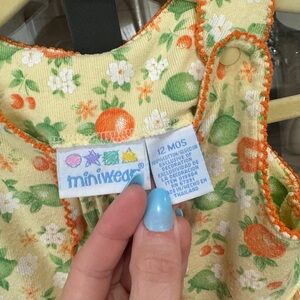 1990s Vintage Miniwear bubble romper baby girl limes lemons fruits print ruffles
