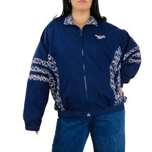 1990s Vintage Reebok Navy Blue Windbreaker Jacket Large Bloke Sportswear Retro