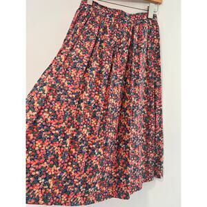 1990s Vintage Silk Midi Skirt w Pockets Lightweight Pink Floral Size Small JL