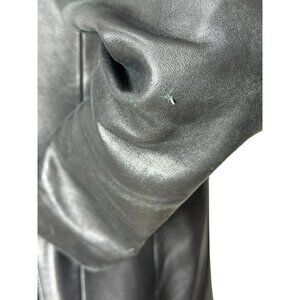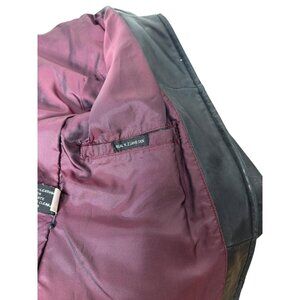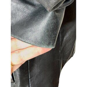 This 90s lambskin jacket is a beauty! The New Zealand leather is very soft and the style is minimalist - clean lines and good fit. It is slightly fitted, with darts from waist to bust and seams in back as well. There are two slash pockets in front lined with flannel. The interior is lined with a pretty purple fabric (50/50 nylon & acetate). The shoulders are padded slightly. The condition is good - there are some areas where the leather is lighter than others - the edges of the cuffs for example. There is one small nick in the leather on the left sleeve - pictured. Otherwise, very good. The size tag reads PM (petite medium) but please check measurements. Made by the Adler Collection.